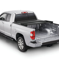 Tonno Pro's TonnoFold soft tri-folding truck bed cover is one of the easiest to use tonneau covers with exceptional durability and great looks. Its tear-resistant, double-sided vinyl top is long lasting and can handle heavy winds, light rain and snow. Under the notably strong vinyl is a powder-coated aluminum frame for an added level of protection from everyday wear and tear. This tri-folding cover keeps a tight fit to the truck bed, does not sag and has limited flutter when vehicle hits high speed. TonnoFold is delivered completely assembled making install a breeze -- no drilling necessary. Simply square up the cover to your truck bed and use its easy-to-use clamping system to lock it securely in place. Hauling large cargo? Completely remove the cover in minutes to meet your unique carrying needs.