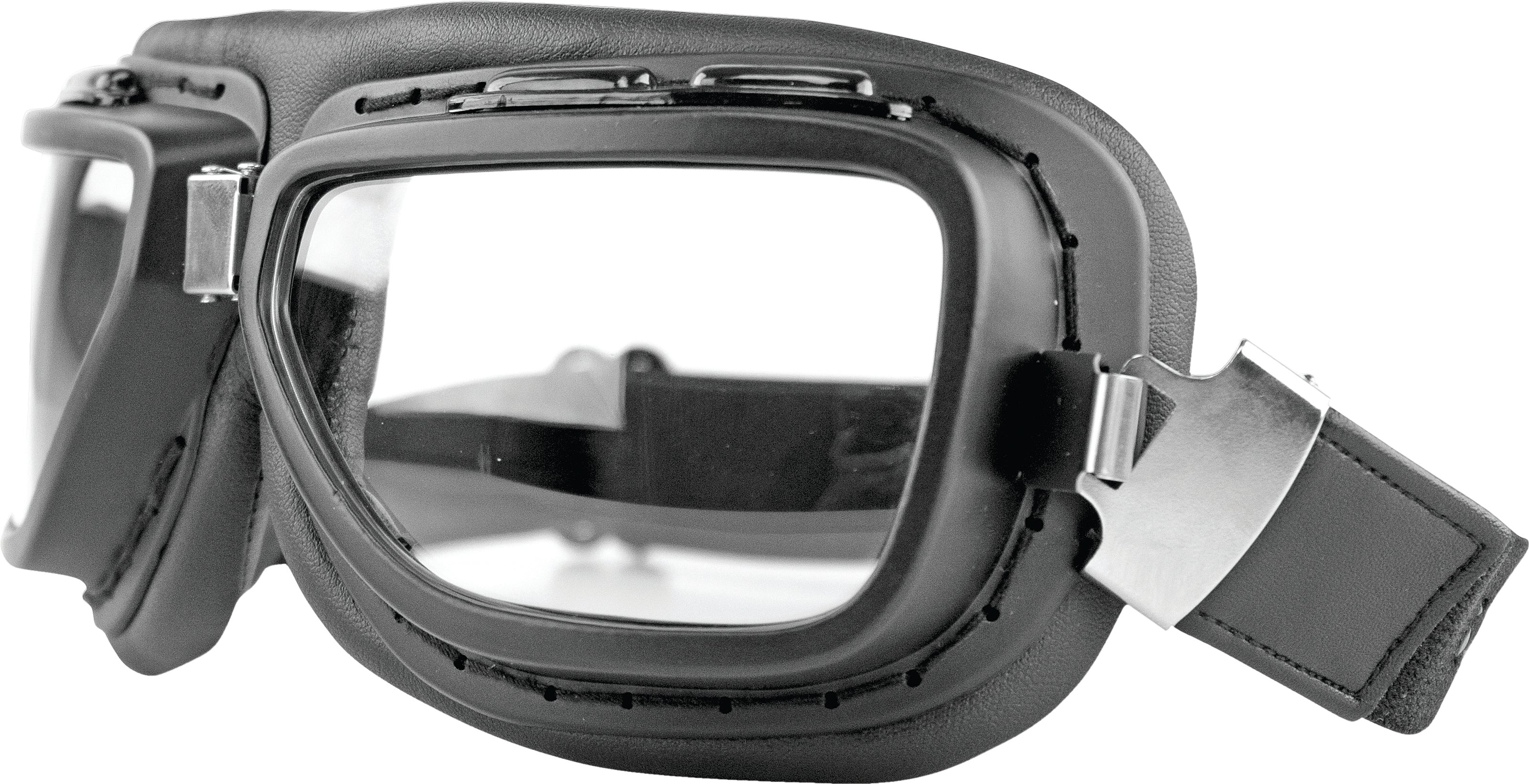 The pilot showcases a combination of retro and modern styling with its sleek aviator styled black frame and leather-like cushioned padding.It also comes with interchangeable polycarbonate lenses that offers the ability to easily switch between smoked and clear lenses to accommodate an all-day ride in a variety of lighting conditions.